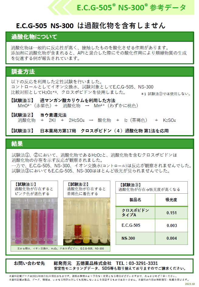 E.C.G-505® NS-300® は過酸化物を含有しません